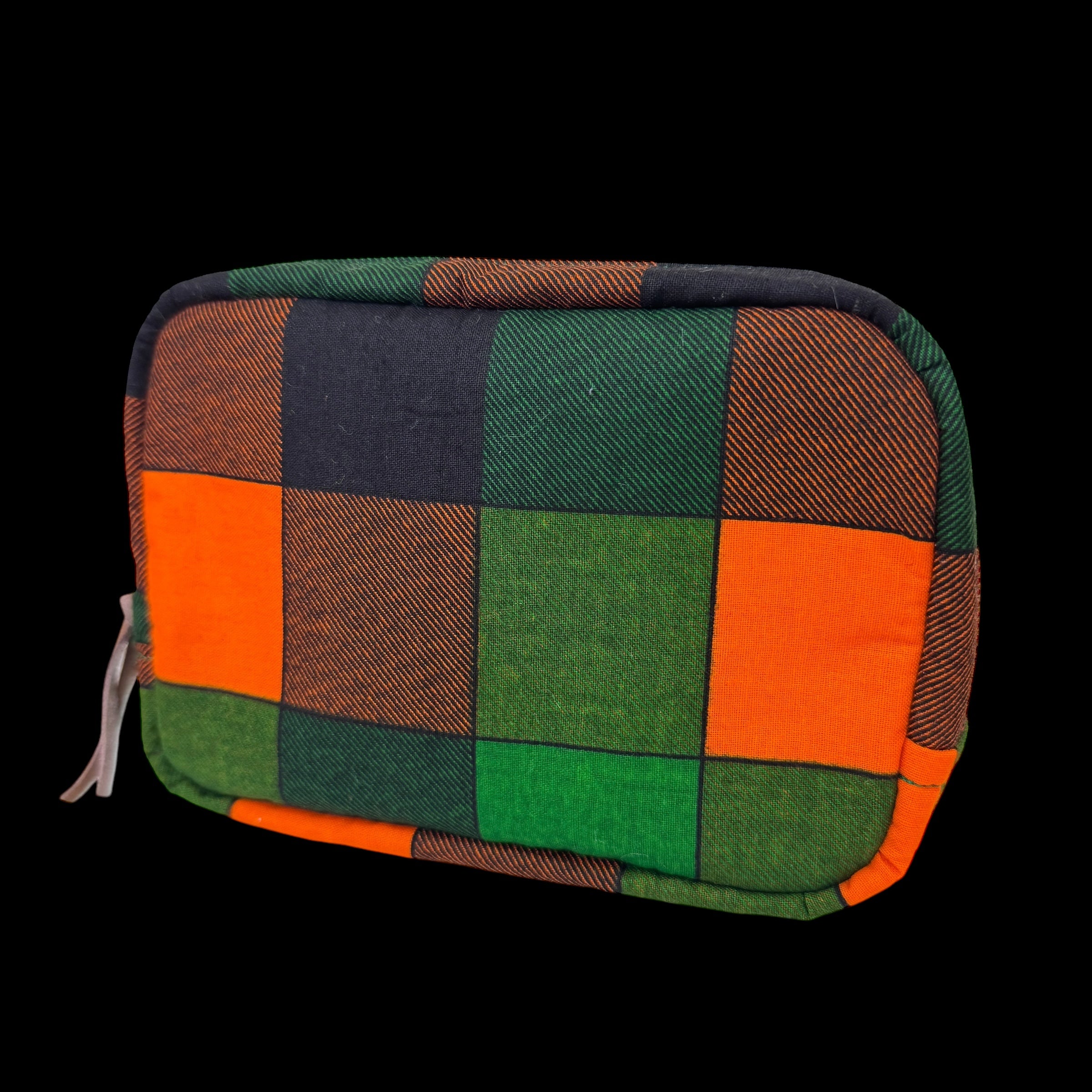 キューブポーチ - ビッグアイ・ターコイズオレンジ&カーキ -